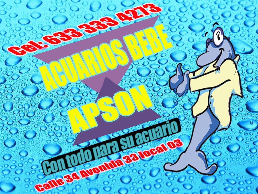 Hace aproximadamente 15 años "ACUARIOS BEBE APSON" comenzó con la intención de poner el mundo de los pececitos al alcance de todos pues el mercado anteriormente estaba muy inaccesible para algunas personas, afortunadamente abrió sus puertas "ACUARIOS BEBE APSON" y se amplió el stock de pececitos que ahora están al alcance de todos y eso nos enorgullece, actualmente también les damos asesorías para mantener en buenas condiciones de vida los pececitos con un mantenimiento adecuado para ellos, te invitamos a disfrutar de nuestro apasionante mundo de la acuariofilia en: