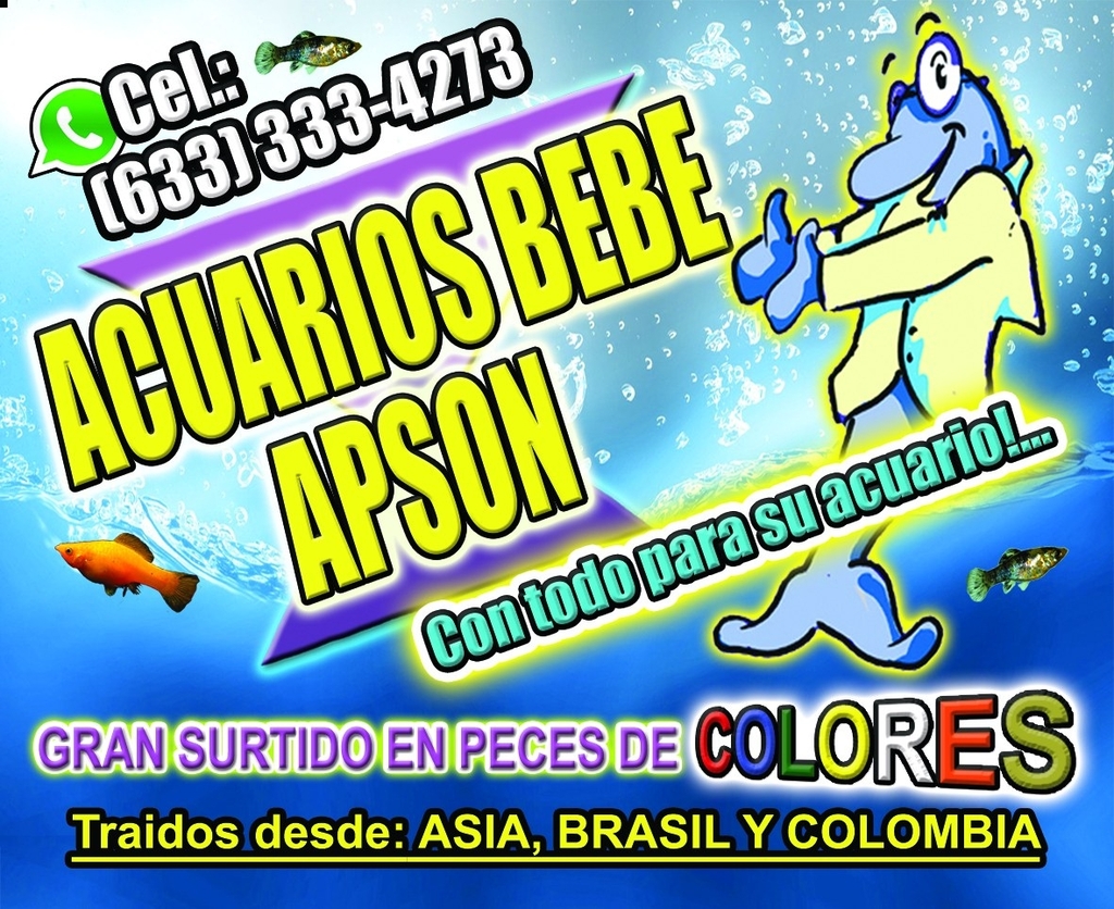 Hace aproximadamente 15 años "ACUARIOS BEBE APSON" comenzó con la intención de poner el mundo de los pececitos al alcance de todos pues el mercado anteriormente estaba muy inaccesible para algunas personas, afortunadamente abrió sus puertas "ACUARIOS BEBE APSON" y se amplió el stock de pececitos que ahora están al alcance de todos y eso nos enorgullece, actualmente también les damos asesorías para mantener en buenas condiciones de vida los pececitos con un mantenimiento adecuado para ellos, te invitamos a disfrutar de nuestro apasionante mundo de la acuariofilia en: